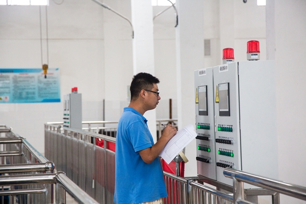 一條小魚歡快的躍起,尾巴在水面上劃出清澈的水花,它的家是孚日集團中水再生利用項目超濾工序的魚缸。污水處理廠排放的尾水,在這里經過深度處理變廢為寶,每年可產出500萬噸染整工藝用水用于家紡產品制造,一年可省出一座高密市城北水庫。從2018年5月開工建設,到2019年7月開始供水,眾多孚日人為這一兼具經濟效益和社會效益的節水項目傾注了心血和汗水。