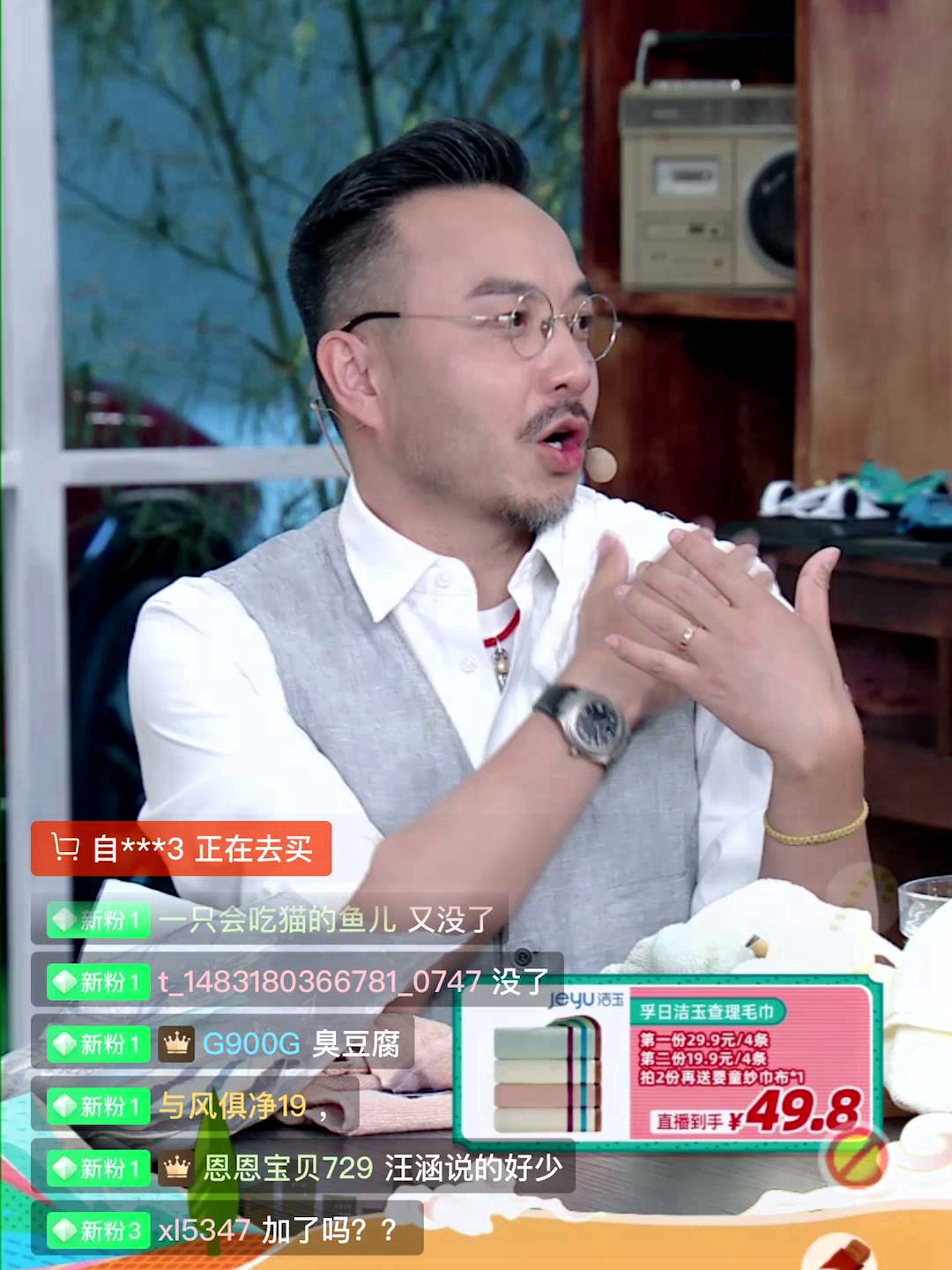 隨后,汪涵終于恢復(fù)了知性本色,談起了毛巾的文化淵源。他說(shuō),國(guó)人使用毛巾類制品的時(shí)間是非常悠久的,可以追溯到秦漢時(shí)期。從方言中的帕帕、帕子,頭腦風(fēng)暴到手絹、手巾、直到羽扇綸巾……這時(shí)候,助理的一聲驚呼讓汪涵瞪圓了眼睛:上線的五千組毛巾已經(jīng)賣光了!是的,還沒(méi)到價(jià)格介紹環(huán)節(jié),就已經(jīng)被熱情的觀眾搶購(gòu)一空。吳總現(xiàn)場(chǎng)拍板決定追加一萬(wàn)組,這樣的一再追加最后到了表態(tài)“只要買,咱就加”,這份基于強(qiáng)大生產(chǎn)能力的豪氣贏得了汪涵雙手點(diǎn)贊。