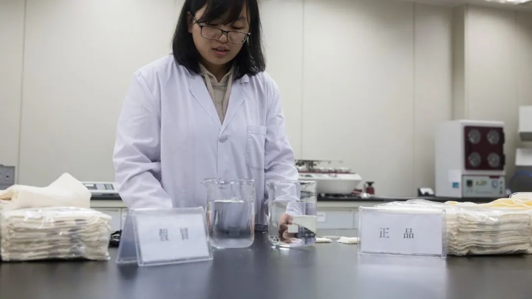 毛巾的吸水性是顯示其內在品質的重要指標。在孚日集團技術中心恒溫恒濕實驗室,技術人員對涉案假冒毛巾進行了吸水性對比測試。正品毛巾試樣在接觸水面瞬間即開始吸水沉降,顯示出遠遠優于國家標準的吸水性。而假冒毛巾試樣超過90秒仍未開始沉降,品質優劣高下立判。值得一提的是,GB/T 22799-2019《毛巾產品吸水性測試方法》正是孚日集團牽頭指定的國家標準之一。