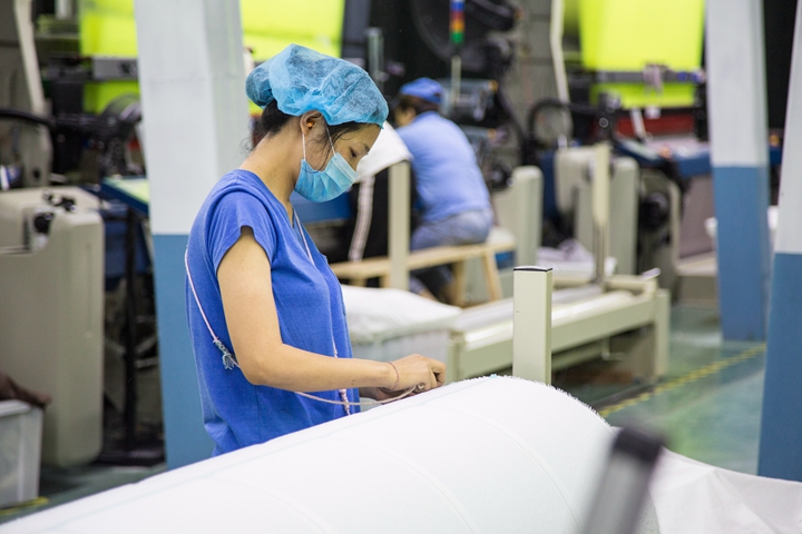 國際市場開發方面,隨著全球經濟逐步復蘇,市場信心增強,外貿環境持續改善,以及部分國家或地區疫情反彈,海外供應能力受到沖擊,部分訂單轉移至中國,多種因素推動了中國紡織品出口持續向好。在新形勢下,公司全力搶抓機遇,加大接單力度,保證了國際市場快速反彈,上半年家紡產品出口2.3億美元,同比增長34%,體現了企業在國際市場上的穩固競爭優勢。