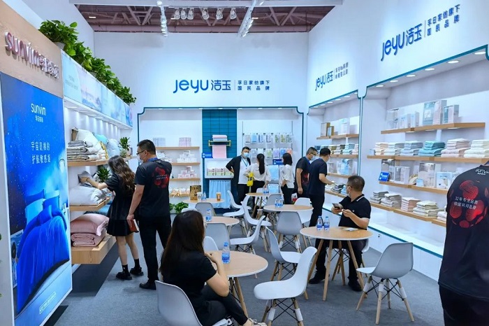 仲夏之月,萬物方盛。2022年6月15日至18日,第30屆中國(深圳)國際禮品及家居用品展覽會盛大舉辦。作為深圳禮品展的長期參展商,孚日集團攜旗下品牌“sunvim孚日家紡”和“jeyu潔玉毛巾” 亮相8號館8F01-10展位,以“只此青綠 一眼萬年”的主題形象,倡導健康、安全、舒適的“孚日6a科技”家居理念。孚日集團董事、副總經理孫浩博蒞臨展會現場指導。